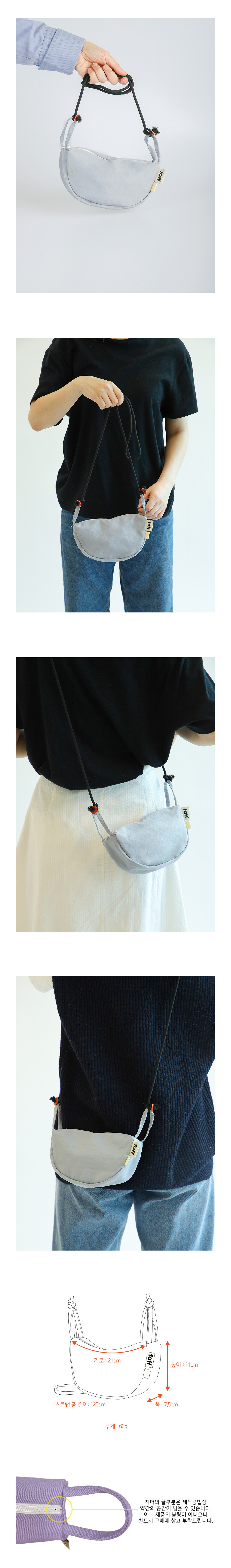 가로 21cm / 높이 11cm / 폭 7.5cm / 스트랩 총 길이 120cm / 무게 60g