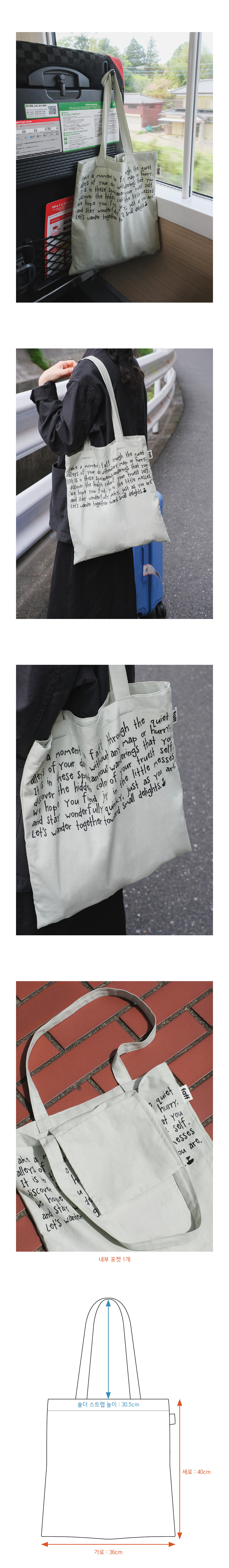 Function & Value: 가벼운 원단과 넉넉한 수납공간, 소지품을 분류할 수 있는 내부 포켓을 갖춰 매일의 외출을 돕는 실용적인 에코백입니다.