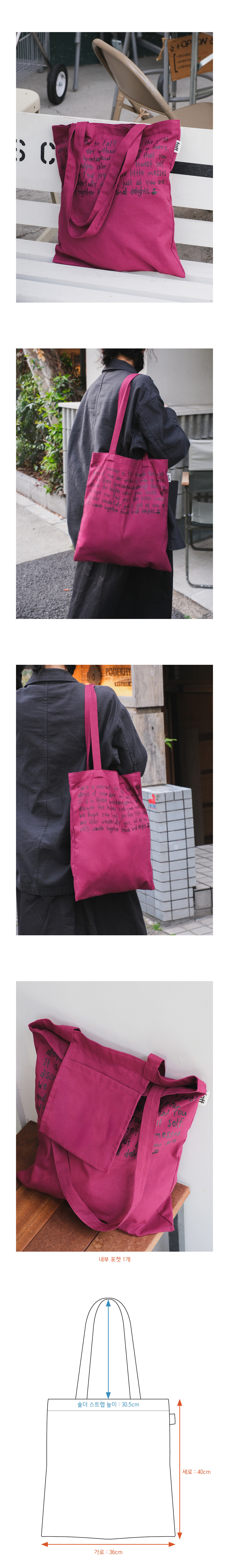 Function & Value: 가벼운 원단과 넉넉한 수납공간, 소지품을 분류할 수 있는 내부 포켓을 갖춰 매일의 외출을 돕는 실용적인 에코백입니다.