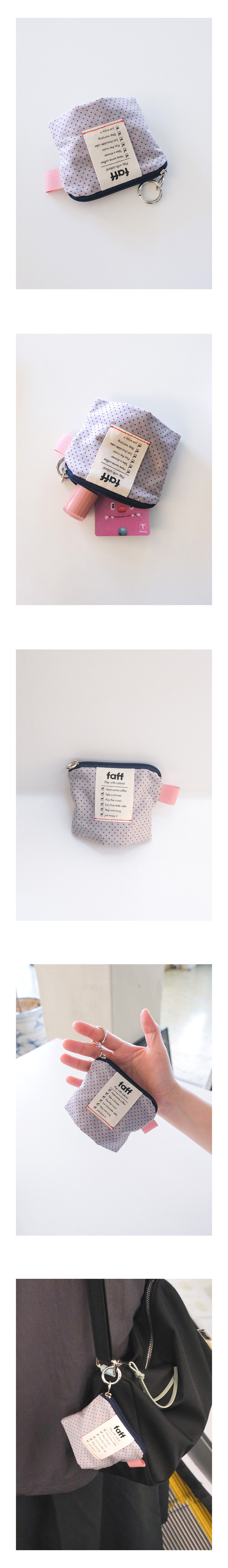 게다가 키링 옵션을 선택하면 가방에 달아 포인트로 활용할 수도 있어, 작지만 존재감 있게 “나 여기 있어!” 하고 살짝 엉뚱하게 신호를 보내는 느낌이랍니다. 매일의 소소한 순간 속에서 즐거움을 선물하는, 귀엽고 알찬 미니 파우치예요.