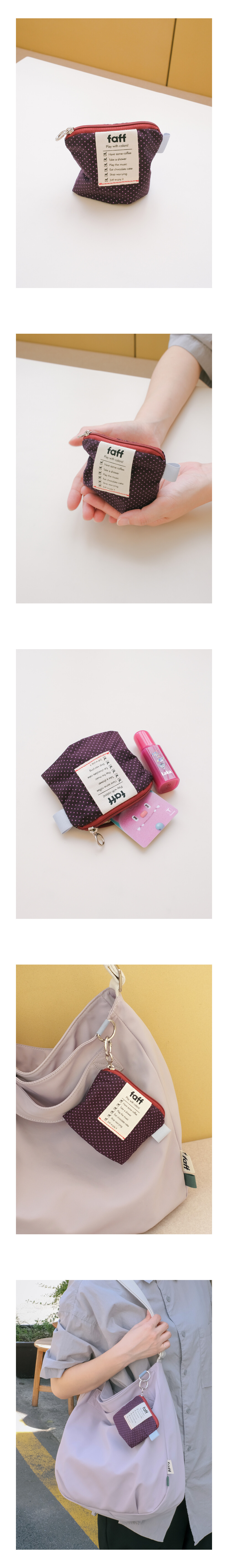 그냥 볼땐 아주 작은 미니 파우치지만, 자세히 보면 큰 기쁨이 숨어 있어요. 립밤 하나, 에어팟 하나, 그리고 꼭 필요한 작은 소지품들을 알맞게 담아주는 사이즈라, 손에 쏙 들어오는 귀여운 친구 같죠.